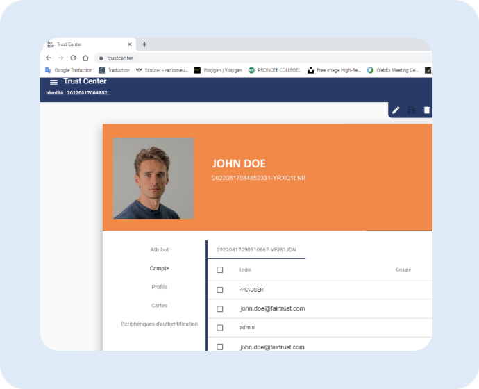 FairTrust centralise et pilote l'ensemble des identités des accédants au SI. Le modèle de droit de type OrBAC structure les règles d'habilitation pour une affectation automatisée des droits. Les identités sont issues des référentiels autoritaires locaux (SIRH) ou du référentiel national RPPS+ pour une parfaite conformité au RIE et objectifs du programme Hospiconnect.